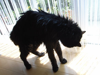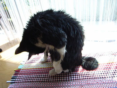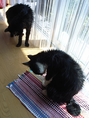 久々の快晴ですし、衣替えの季節なので、洗っちゃいました。 2匹とも洗っちゃいました。まずはうしちゃんを先に洗ったのですが、くまぽんは次に洗われるとも知らず、うしちゃんのシャンプー姿をじっと見ていました。 夏の用意は万端です。
