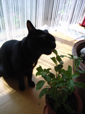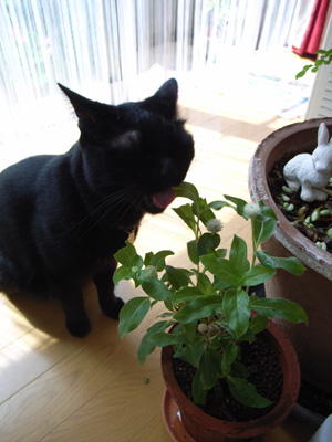 鉢植えを食べています。むしゃり。