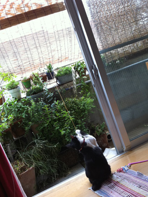 うしちゃんはスダレを下げて涼を求めます。