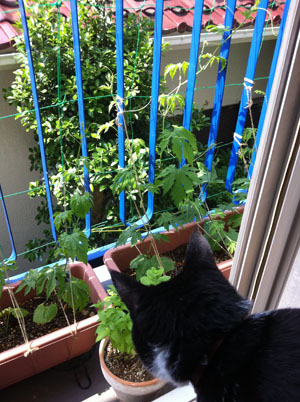 ねこと一緒にゴーヤの成長を眺めるのが 楽しくて仕方がありません。