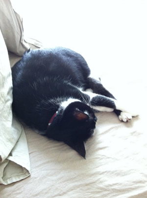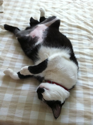 夏本番になったら、涼しくなりましたね。 30℃いかないと、こんなに過ごしやすいんだ〜と実感です。 そして、ねこたちも活動的です。 (下の写真は寝てますが^^; ) うしちゃんは、気温によって寝方が違うようです。