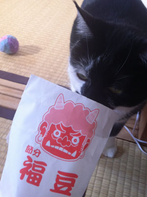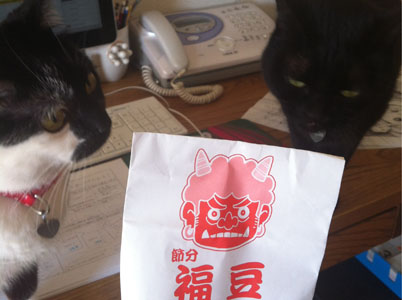 節分 いやはや、毎日寒くて冬真っ盛りですね++ そんな中、朝から豆まきして邪気を吹き飛ばしました。 寒波も吹き飛ばしたいですね。 それにしても、豆を食べる数が年々増えてきて けっこうツライです。++;;