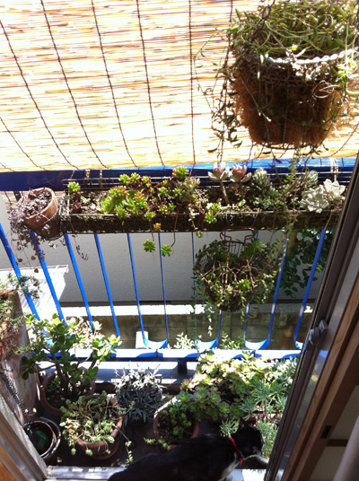 スダレをして夏の準備。 多肉ちゃんたちがモジャモジャ☆ (うしちゃんはモコモコ)