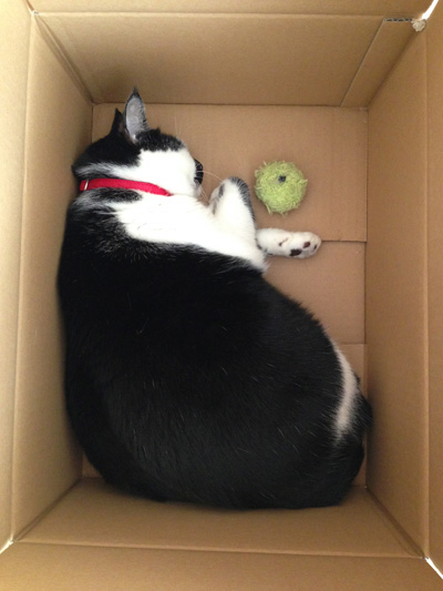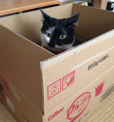 うしちゃんはシリアルのダンボールが超お気に入り。
