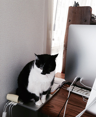 ねこたちがパソコンを守ってくれているので、