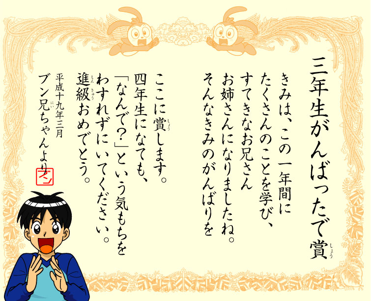 表彰状風にデザイン。